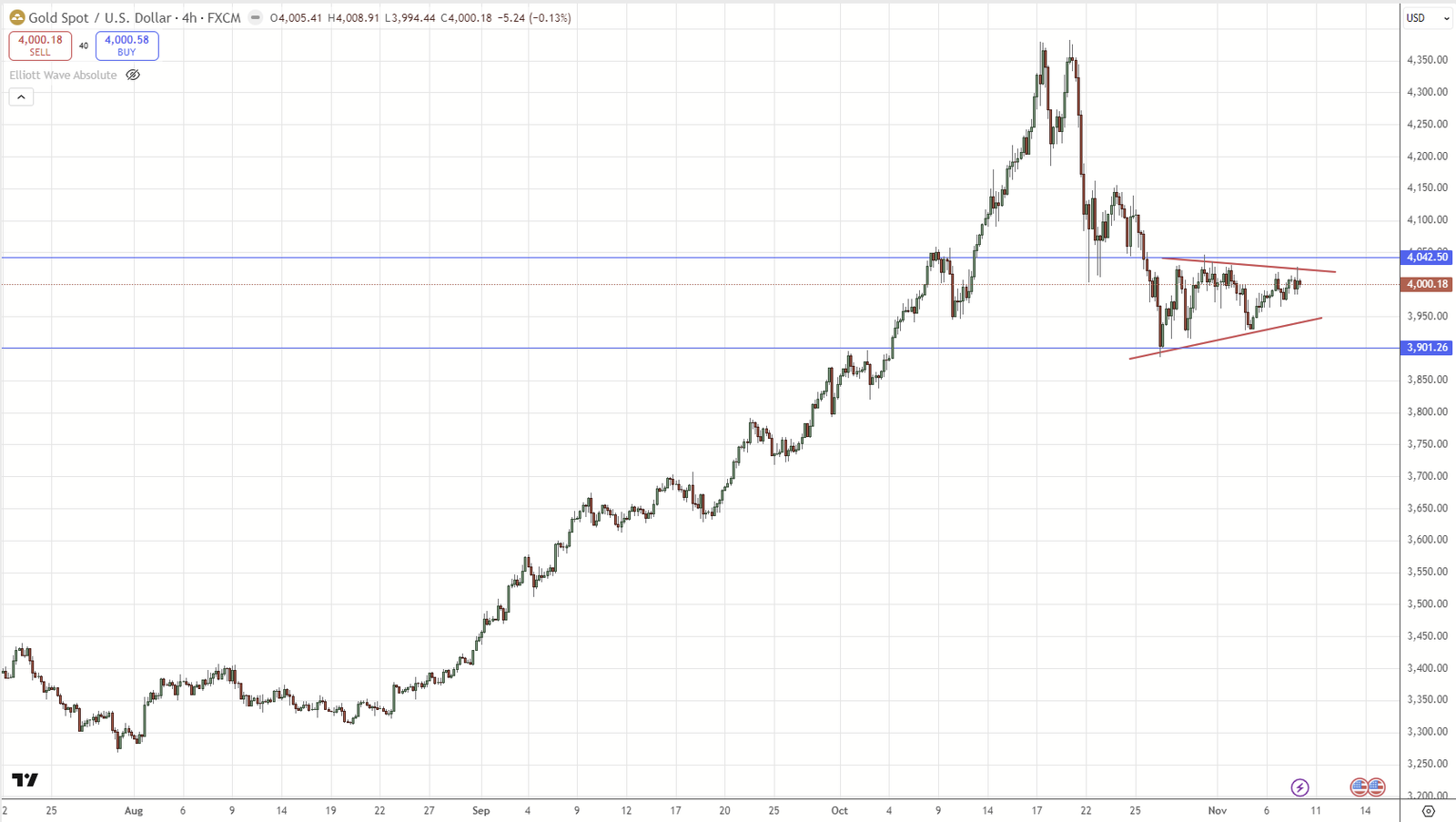 Xu hướng chính: Giá vàng giảm đáng kể vào đầu tuần, nhưng đã nhiều lần kiểm tra mức hỗ trợ quanh 3.980 USD/ounce vào thứ năm (ngày 7 tháng 11).