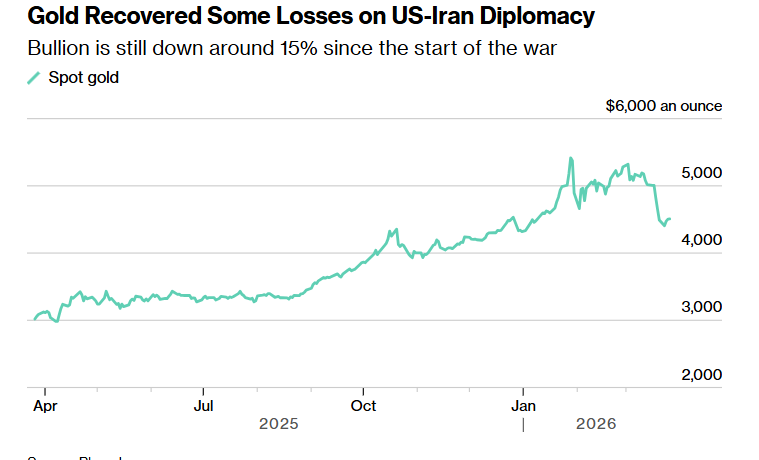 Trong một email, Bas Kooijman, CEO và nhà quản lý tài sản của DHF Capital, cho biết vàng có thể tiếp tục đối mặt với rủi ro giảm giá nếu lợi suất trái phiếu kho bạc Mỹ phục hồi và giá dầu tăng trở lại, đặc biệt nếu các cuộc đàm phán giữa Mỹ và Iran về khả năng chấm dứt xung đột đổ vỡ.
